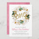 Blommigt Magnolia Rosa och Guld 1:a födelsedagen P Inbjudningar