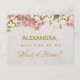 Den här elegant blommigten "Kommer du att vara min Maid of honor" frieri vykort med marmor bakgrund och rosa och vita orkidéer på övre gräns. Rubriken "Maid of honor" skrivs i ett kalligrafiskt skript för elegant. All text kan vara personlig och ha en gyllene gult färg. Vintage blombuquet med rosa och vita stavar kommer från ett hälsningskort för vintage av Bertha Maguire (1862-1910), som nu är allmänt tillgänglig. Du kan naturligtvis ersätta ord "Maid of honor" med "Bridesmaid" eller "Flower Girl".