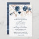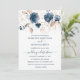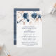Blommigt marin blå och guld Bröllop Inbjudningar