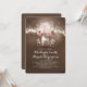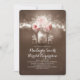 Inbjudan till vintage bröllop innehåller en sträng med ljus som hänger på träd gren och söt lilla mason burk med rosa ros och baby utandnings blommar.