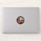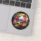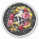 Sticker med blommor, skalle och gult orm, ljusa färger, unik utformning.