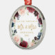 Elegant Guld Script Watercolor Burgundy Marsala och Blue Blommigt - Vår första jul som Mr. och Mrs. Bröllop Ornament