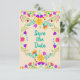 Blommigt Spara datumkortet på ett färglöst mexikanskt Fiesta stil och dekorerade båda sidor med konstblommor och papelpicado. Texten på framsidan lyder helt enkelt "Save the Date" i turkos grönt på en champagnebakgrund. På baksidan ställs redot in så att du kan lägga till ditt speciella datum, ditt namn, tillfälle och anpassningsbar. Utformningen kan anpassas till kostym oavsett tillfälle och är perfekt att samordna med vår Quinceanera-samling. Bläddra i vår butik efter matchande adressetiketter, kuvert osv.