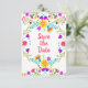 Blommigt Spara datumkortet på ett färglöst mexikanskt Fiesta stil och dekorerade båda sidor med konstblommor och papelpicado. Texten på framsidan lyder helt enkelt "Spara datumet". På baksidan ställs redot in så att du kan lägga till ditt speciella datum, ditt namn, tillfälle och anpassningsbar. Utformningen kan anpassas till kostym oavsett tillfälle och är perfekt att samordna med vår Quinceanera-samling. Bläddra i vår butik efter matchande adressetiketter, kuvert osv.
