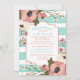 Blommigt Mint Möhippa Rosa Flowers Rand Inbjudningar