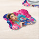 En bild av en blommigt mode prinsessa med handväska, guld bälte, smycken och krona.