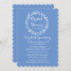Ställ in roligten på möhippan med den här söta hand plockade blommigt-krandblått inbjudningskort för möhippa. Den här inbjudan till roligt blå och vit dusch innehåller en hand plockade-vit blomkrans som belyser möhippans detaljer som är tryckt i vitt skript och lättläst typsnitt. Baksidan av inbjudan har en koordinerande blå kornblomsbakgrund. VÄLJ RULLA NEDÅT OM DU VILL VISA MATCHANDE PRODUKTER SOM DU KAN ÅTNJUTA.