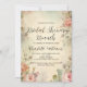 Blommigt möhippa brunch-inbjudan med vintage-stil och rosa ros. Anpassa texten med information om party, OSA och registerinformation för att fira den blivande briden.