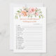 Vattenfärgad aprikosrosa ro och grönt löv. Spel för Möhippa i blommigt - kort för Dubbla - Två spel i ett! Möhippa What's in your Purse Game in the front of card and Bröllop Scramble match on the reverse. Svaret på nyckel för Bröllop Scramble-spelet: Bride, Groom, Bröllop Cake, Honeymoon, Äkta kärlek, White Dress, Snöre, Happiness, Unity Candle, Bridesmaid, Marskalkar, tjänsteman, Chapel, Giftermål Vows, Ring Bearer.