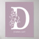Blommigt Monogram Brev D Namn Nursery Modern Poster