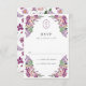 Blommigt Monogram Bröllop OSA Card. Den har ett kalligrafiskt skript för elegant och ett utsökt, handmålat vattenfärgsverk i mjuk lavender, rosa, djup burgundi och pulserande lila, adorberat med delikata vilda blommor, ro och elegant greenery. Perfekt för vår, sommar- och fallbröllop, varje objekt i denna samling viskare från kärlek, inkräktande och tidlös romantik, vilket anger läget för ert oförglömliga firande. Låt naturens skönhet och vintagens charm härliga din speciella dag med vår fängslande samling.