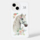 Ett telefonfodral med en magisk illustration av ett vackert vitt hästhuvud. Omgiven av söta små rosa blommor. Boho elegant vibe för hästälskare.