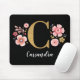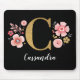 Ett vackert, feminin monogrammat musknapp av rosa blommigt med rosa blommor och ett faux guld monogram brev C på svart bakgrund. Anpassa musknappen genom att lägga till ditt namn under monogrammet. Gör en roligt till en vän eller till en brud gåva. Designad av Blackberry Boulevard.