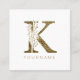 Blommigt Monogram K Elegant Guld Foliage Fyrkantigt Visitkort