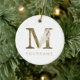Blommigt Monogram M Elegant Guld Foliage Julgransprydnad Keramik