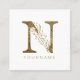 Blommigt Monogram N Elegant Guld Foliage Fyrkantigt Visitkort