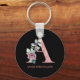 Blommigt Monogram Namn Brev Rosa Agate Nyckelring