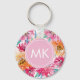 Girly nyckelring med monogram har vattenfärgen mönster och rosa och vitt monogram.