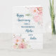 Lycklig-bröllop-årskort för mor och far med vackra blommor av vintage i vattenfärg, rustiskt trä och sentimentalt vers.