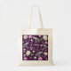 Den här tote-väskan har den moderna texten Lycklig Mors dag med mörkens lila bakgrund, accentuerad med vattenfärgsfärgade blommigtar. En perfekt för Mors dag.