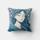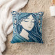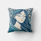 Blommigt Mosaic Woman Illustration in Blue Kimono Kudde
