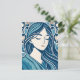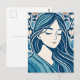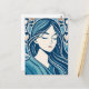 Blommigt Mosaic Woman Illustration in Blue Kimono Vykort