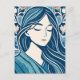 Den här illustrationen av eleganten är en serenkvinna med flytande mörk hår, försedd med en mönstrad blå kimono, försedd med en kompakt mosaik blommigt. Konstruktionen binder samman Östra konstens påverkan med ett bioestetiskt chic, skapar den perfekt för dem som uppskattar lugn, nåd och detaljerat hantverk. Med sin blåa palett i färg och lugnande sinnesstämning ger denna grafik en fredlig energi till vilken produkt som helst, oavsett om det gäller hemdeka eller mode.