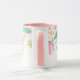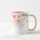 I blommigten har mugg söt pastel bilder av blommor längst upp kant i mugg. Det exempel på insida som visas är rosa. Välj din färg insida för att kostym din smak. Anpassa mugg eller köp som designat.