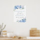 Blommigt något blått välkomsttecken för Möhippa. Välkomsttecken för elegantens dammiga blåa blommigt möhippa. Vackra handmålade vattenfärgblommor i baby blue och dammiga blå perfekter för vår, sommar och fall-möhippor. Matchande objekt är tillgängliga.