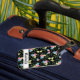 Lägg på ditt bagage med det här blommigtens monogrambagage. Design har en svart bakgrund med blommigt för rosa, blått och gult. Anpassa informationen till ditt namn eller initialer. Anpassa typsnittet stil och färg till kostym i stil.