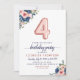 Blommigt Navy Ro Guld Balloon 4e födelsedagen Inbjudningar