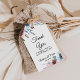 Dessa botaniska blommigtar och chic i vår som du vill ha taggar är perfekt för ett enkelt bröllop. Den konstnärliga botaniska blommigtens utformning har rosa, lila, grönt och blåa blommor i ramar eller former i en chic romantisk décor. Anpassa dessa märkre med ett kort-meddelande, ditt namn och ditt bröllop-datum. Du kan hur som helst ändra ordalydelsen på dessa märkre till kostym.