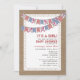 Blommigt och Gingham Bunting Burlap Inspired Girl Inbjudningar