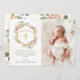 Den här eleganten Baptism eller julningstack som du kan använda har trendig vattenfärgsblommor i skugga av rosa, damm ro, och taupe med rikligt med grönt och modernt, faux guld kor i ett trendig geometriskt ram. Du kan lägga till ditt baby foto på framsidan. stänk dekorerar bakgrunden genom att titta på rosa.