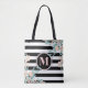 Blommigt om Monogram för Svarta och vita Rand Tygkasse