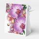 Orchds ger en prydnadsbakgrund för den här bröllopsförmånslådan. Underbar för varma väderhändelser, bröllop, årsdagar, utomhus, inomhus. Använda för att komplettera blommigt bröllop, inklusive tropiska teman. Lägg enkelt till dina uppgifter. Använda mallen som ska anpassas.