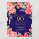 Röd Blommigt Överraskning 90:e födelsedagsinbjudan till kvinnor. Vattenfärgad botanisk Blommigt blomma. Guld Glitter. Rosa Peonies Blommigt Flowers. Vuxen Birthday. Blåbakgrund. Om du vill göra ytterligare anpassningar klickar du på knappen "Anpassa" och användor verktyg som är utformat för att ändra mallen.