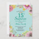 Blommigt Överraskning 15:e födelsedagsinbjudan till kvinnor. Blommigt för vattenfärg, Teal Aqua Turquise Background. Om du vill göra ytterligare anpassningar klickar du på knappen "Anpassa" och användor verktyg som är utformat för att ändra mallen.