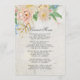 Hand som färgats i vattenfärger av Audrey Jeanne Roberts, med en lång rad blommor av rosa med löv av eukalyptus, frön och andra bladväxter av färgad. Det här kortet koordinerar med bröllopsinbjudan och är till val av middagsmeny. Anpassa enkelt menyalternativen i vår enkla mall.Upphovsrätt.
