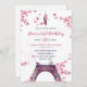 Blommigt Paris Eiffel Torn 2:a födelsedagspartiets inbjudan
