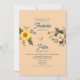 Boho, elegant, modern, botanisk, blommigt, dammig blått och persikofuzz bröllopsinbjudan med guld-rep, solros, rosa blommor, monogram bakåt och trendig handskrivet kalligrafi-skript.