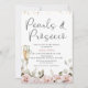 Blommigt Pearls Prosecco QR Code Möhippa Inbjudningar