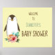 Blommigt Penguin Anpassade Baby Shower-skylt Poster