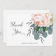 Här är en elegant, ett modernt tack för bröllop, möhippa eller någon annan händelse som du skulle skicka en Tack för. Den här utformningen har en bukett av vackra blommande peonier i rosa och elfenben med eukalyptus grey foliage i grönt, sage grönt och skogsbruk tillsammans med ord "Tack" i en snyggt med skrivstil. Vid grund finns namnen på bruden och brudgummen. Du kan enkelt lägga till efternamn eller data till den här mallen för enkelt anpassade. Kortets baksida är tillgänglig för all ytterligare text som du vill lägga till. Om du har en designfråga eller vill se den här designen på en annan produkt kan du kontakta mig på jschmidtdesignworks@gmail.com. Design © Judith Schmidt.