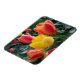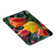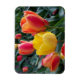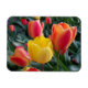 Gult och röda tulpaner från min grannes sten-trädgård. Du kan skapa din egen fotomagnet souvenir genom att byta ut min bild av blommor mot ditt eget digitala foto. Skapa en trevlig souvenir från en familjesester.