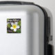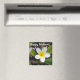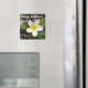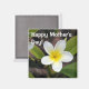 Denna vackra Plumeria/frangipani-blomma, med sina fem petaler, vita på utsidan och ljusa gulter i mitten, grönt löv och en brun skugga i bakgrunden, är en härlig miljö för Lycklig Mors dag önskan på kylmagnet!