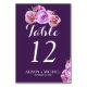Mall för trendig blommigt bröllop bordsnummer med lätta lilak-rosor på mörkens lila bakgrund och handskrivet som typografi. Anpassa den med din gästinformation från bröllop! När du beställer måste du anpassa den och placera den i shoppingvagnen ett efter ett.Bakgrunden färg och texten kan redigeras. Anpassa den efter dina behov efter att du valt alternativet "anpassa ytterligare". — Om du behöver hjälp, kontakta mig. Perfekt för en elegant snyggt modern contemporary sommar/höstträdgård/blommigt bröllop.