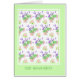 Ett mycket söt födelsedagskort med framkåpan hälsning på portugisiska och mönster i rosa ros, gräddvit Mock Orange och lila Lavender på vit bakgrund med blek grönt gräns, från en handmålad vattenfärgsdesign av Judy Adamson. Insidan lämnas tom för ditt eget meddelande.