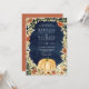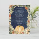 Blommigt Pumpkin Terracotta QR Code Navy Bröllop Inbjudningar
