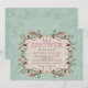 En söt design med delikata rosa blommor med brunt blad och stjälkar som skapar ram för din personanpassning. Bakgrunden är en teal på teal grunge mönster. Perfekt för duschar, födelsedagar eller kvinnlig firande. (FP)